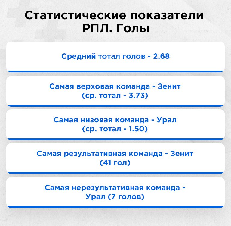 - Урал (88% матчей): в 14 из 16-ти игр забивалось не более двух мячей.