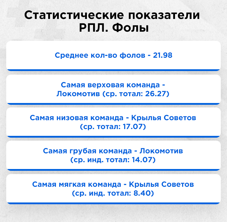 - Крылья Советов: среднее кол-во фолов соперников 8.67