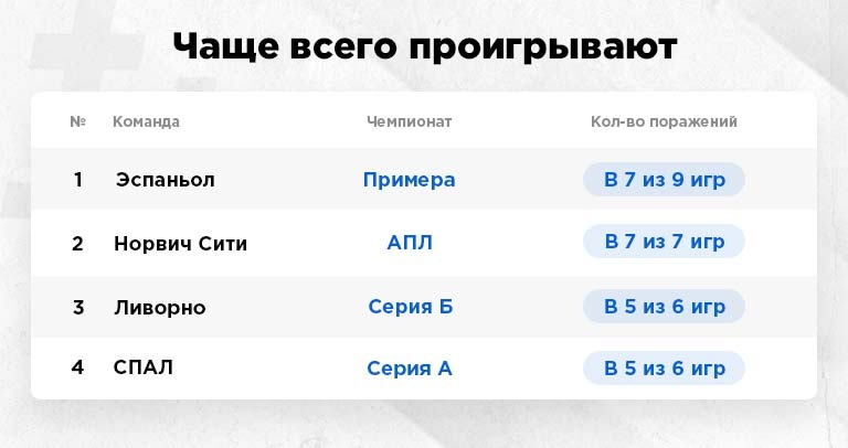 На некоторых пандемия повлияла совсем уж пагубно. Мы отобрали сразу четыре команды, которые почти не вспоминают о существовании других результатов, кроме поражений. Позитива не добавляет и то, что они все готовятся к понижению в классе. Сложно поверить, что кто-то из них неожиданно воспрянет духом и начнет стабильно набирать очки.