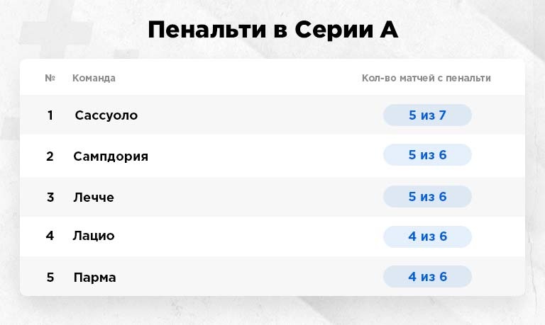Кроме того, любители итальянского футбола могли заметить, как часто назначаются пенальти после рестарта сезона. "Точка" становится еще одним трендом итальянского футбола после рестарта, а мы предлагаем вашему вниманию команды, в чьих матчах чаще всего встречаются пенальти: