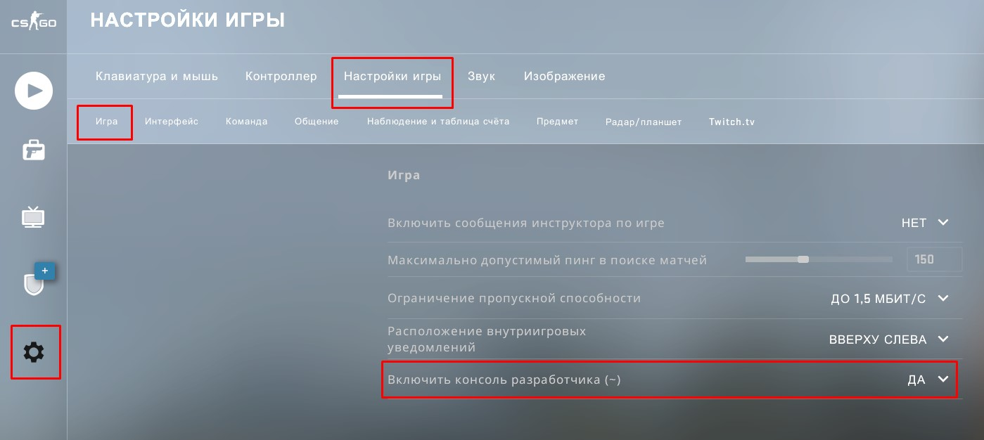 - Установите значение «Да» в пункте «Включить консоль разработчика» (Enable Developers Console (~)).