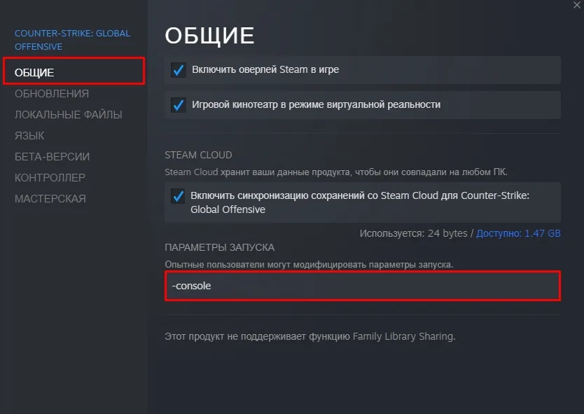 Для полной активации консоли необходимо добавить специальный параметр запуска в Steam: