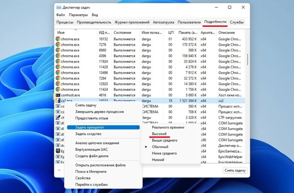 Помимо этого нужно предоставить высокий приоритет конкретно для игры. Для этого нужно: