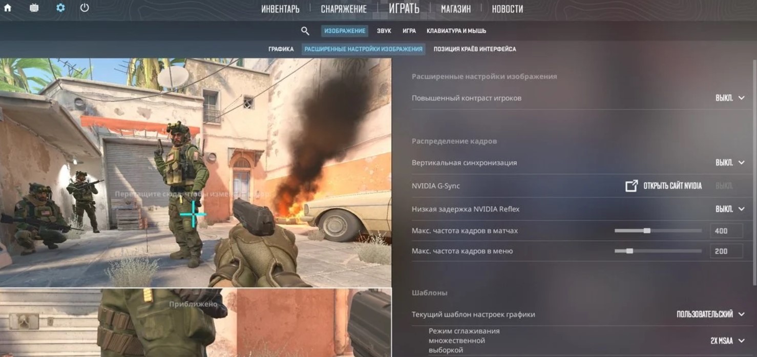 - Выбрать низкую детализацию игровых моделек и текстур;