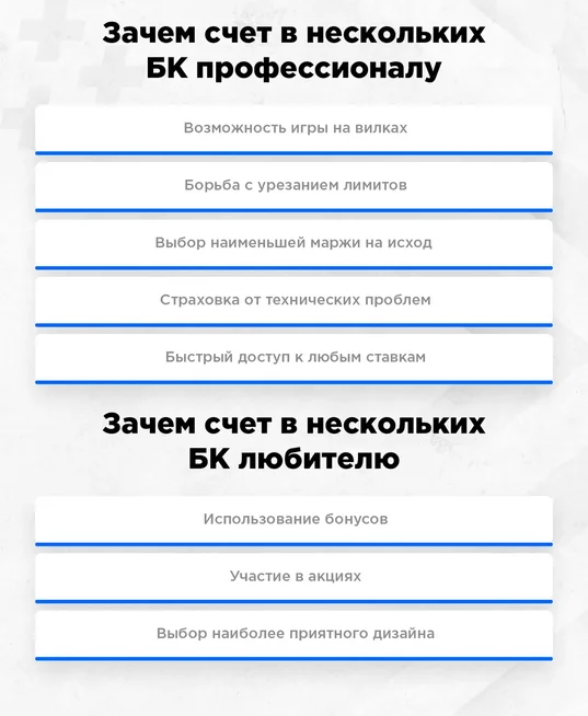 Профессиональные бетторы и любители преследуют немного разные цели при создании счетов у нескольких букмекеров.