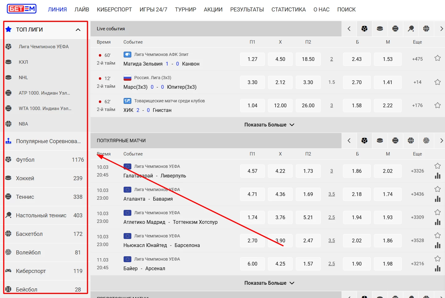На уровне букмекерского продукта Бет-М во многом повторяет Мелбет: та же логика сайта и приложения, та же структура разделов, похожий набор рынков и общий сценарий использования. При этом коэффициенты здесь другие, и это важный момент для оценки букмекера. Поэтому дальше на странице мы будем смотреть не только на регистрацию, идентификацию, бонусы новым игрокам, акции для действующих пользователей и спорные ситуации, но и отдельно на котировки — как они выглядят в сравнении с Мелбет и со средними значениями по российскому легальному рынку (спойлер – неплохо).
