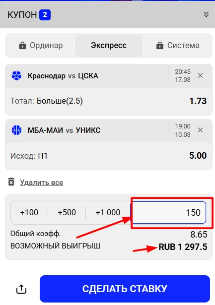 - Заключить в течение недели пари с кэфом от 1.50 (вейджер х5).