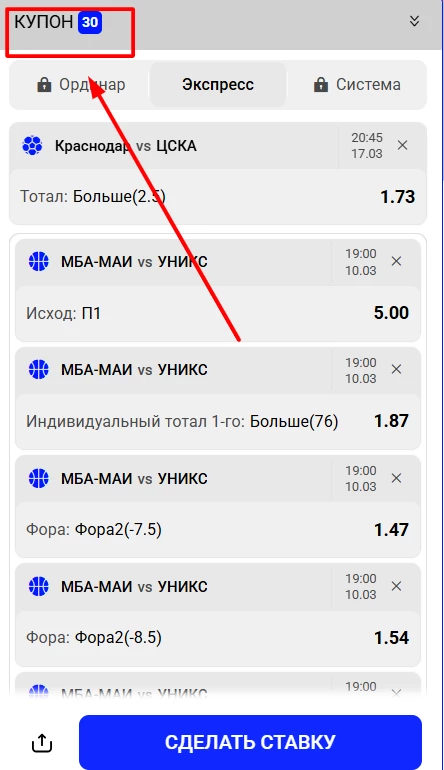 - заключать пари на разные события, в том числе на топовые матчи (избегать ставок только на смолл-маркеты);