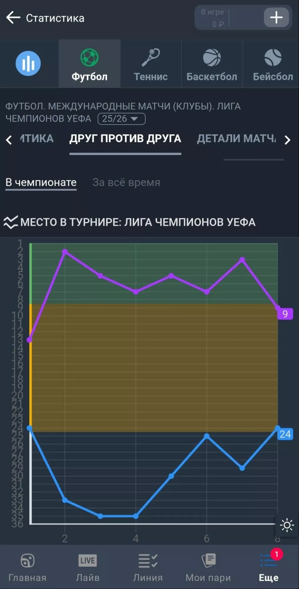 3 | Заключить два ординара (лайв и линия) от 50 ₽ с кф от 1.40 | 100 ₽ на экспресс из 2 событий (кф от 1.40 до 3.00) | 900 ₽ |