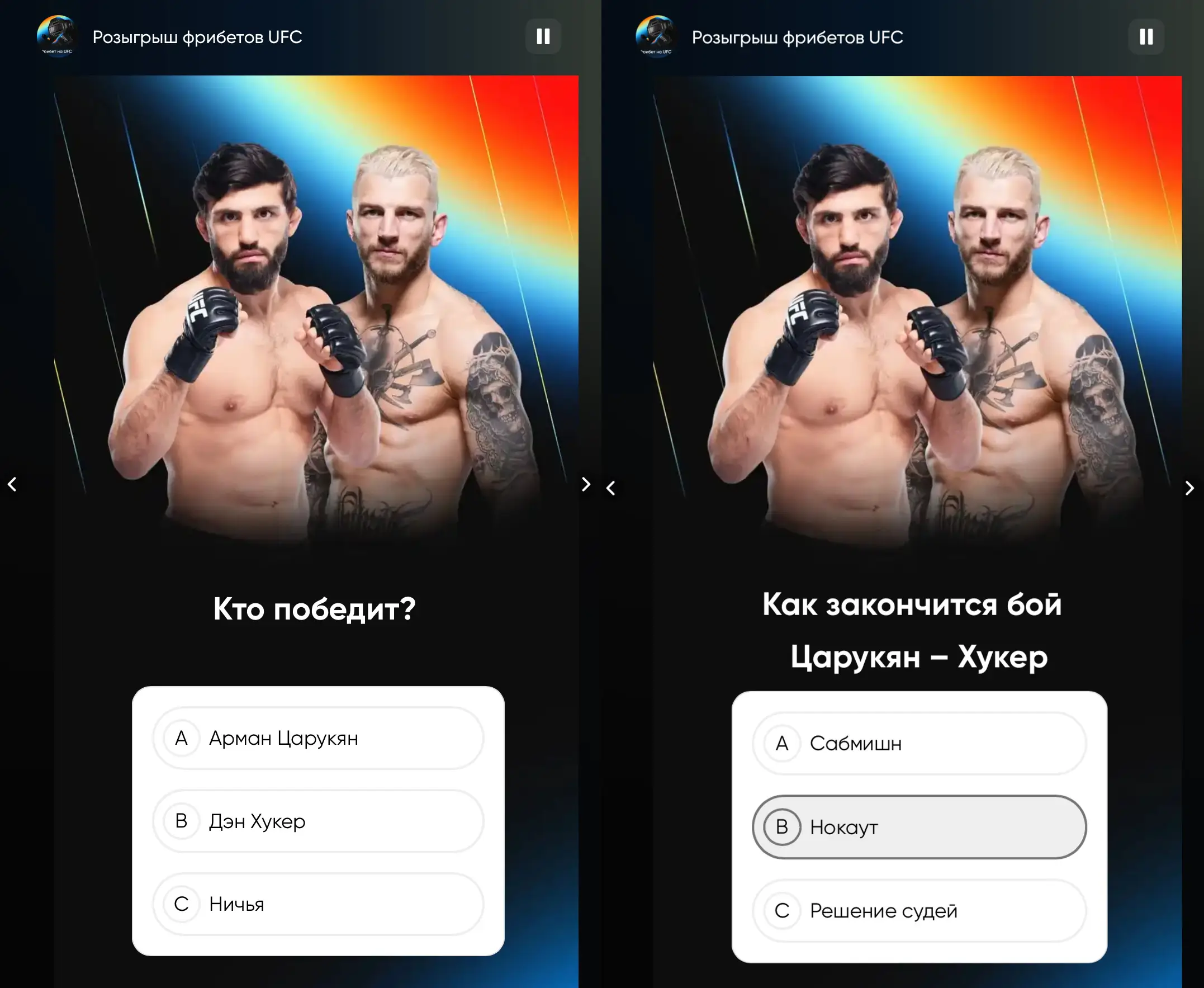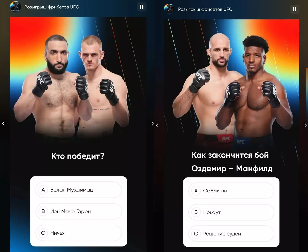 - Ответить на вопросы о предстоящих боях UFC в сторис на сайте или в приложении БК
