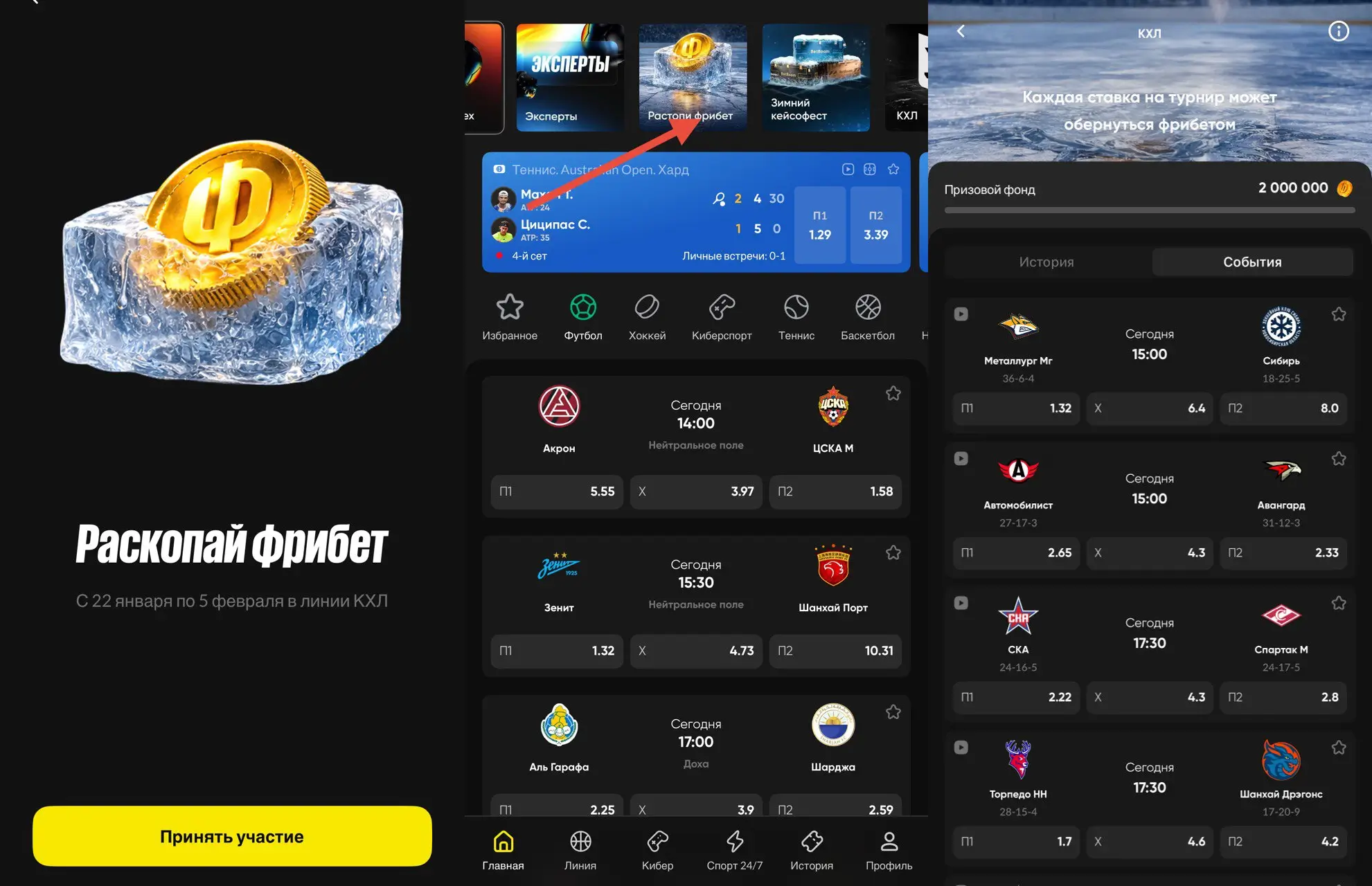 - Перейти к акции «Растопи фрибет» из сторис в приложении букмекера