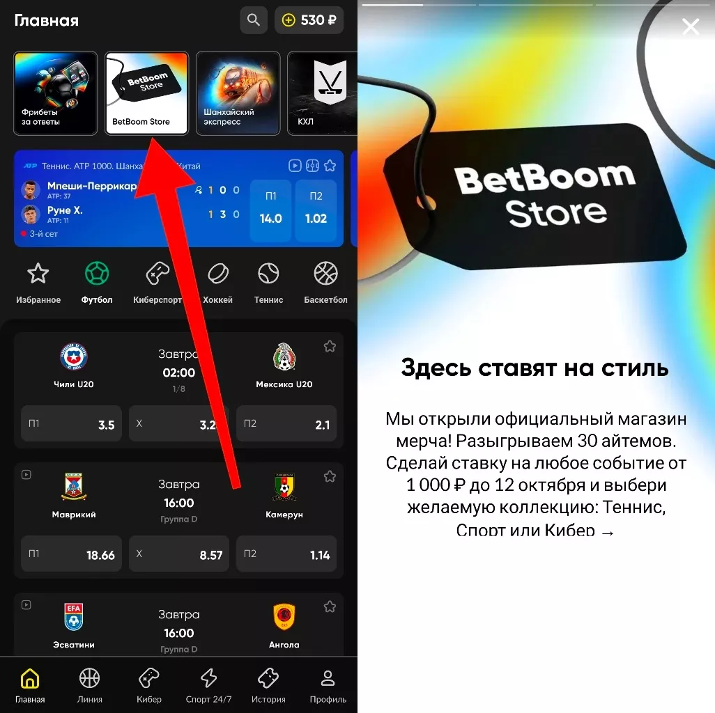 - Перейти в сторис акции «BetBoom Store», выбрать 1 из 3 коллекций в мерч-шопе