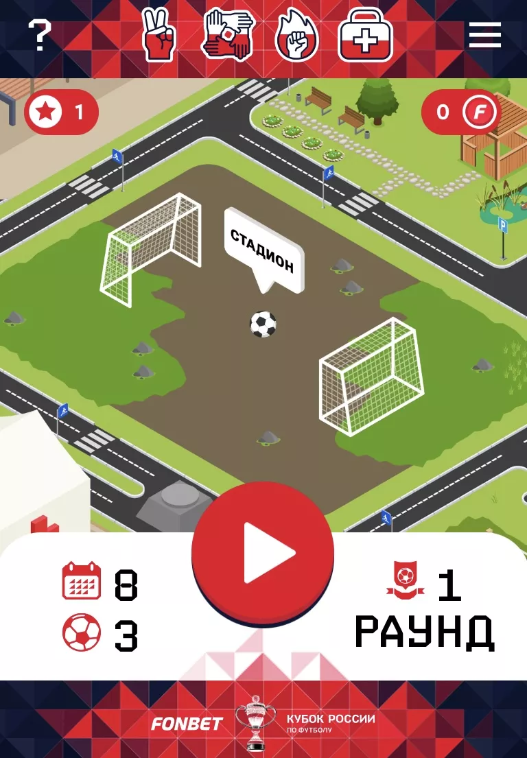 Акция для всех клиентов Фонбет. Вначале необходимо перейти в Телеграм-бот «FONBET Кубок России Bot». Затем — кликнуть на кнопку «Играть».