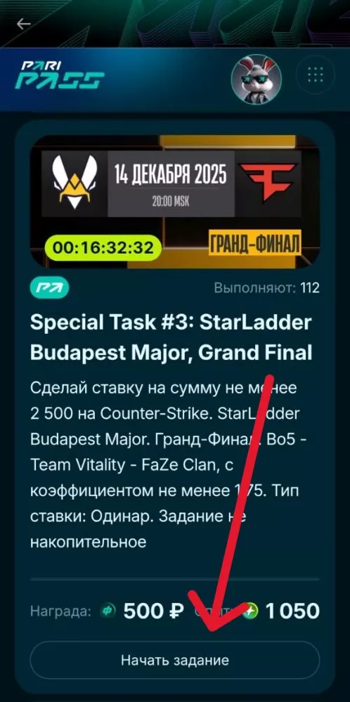 PARI дает гарантированный фрибет за ставку на гранд-финал StarLadder Budapest Major 2025 по Counter-Strike. Без розыгрышей и таблиц — выполнил задание в Пари Пасс и получил 500 ₽ фрибетом.