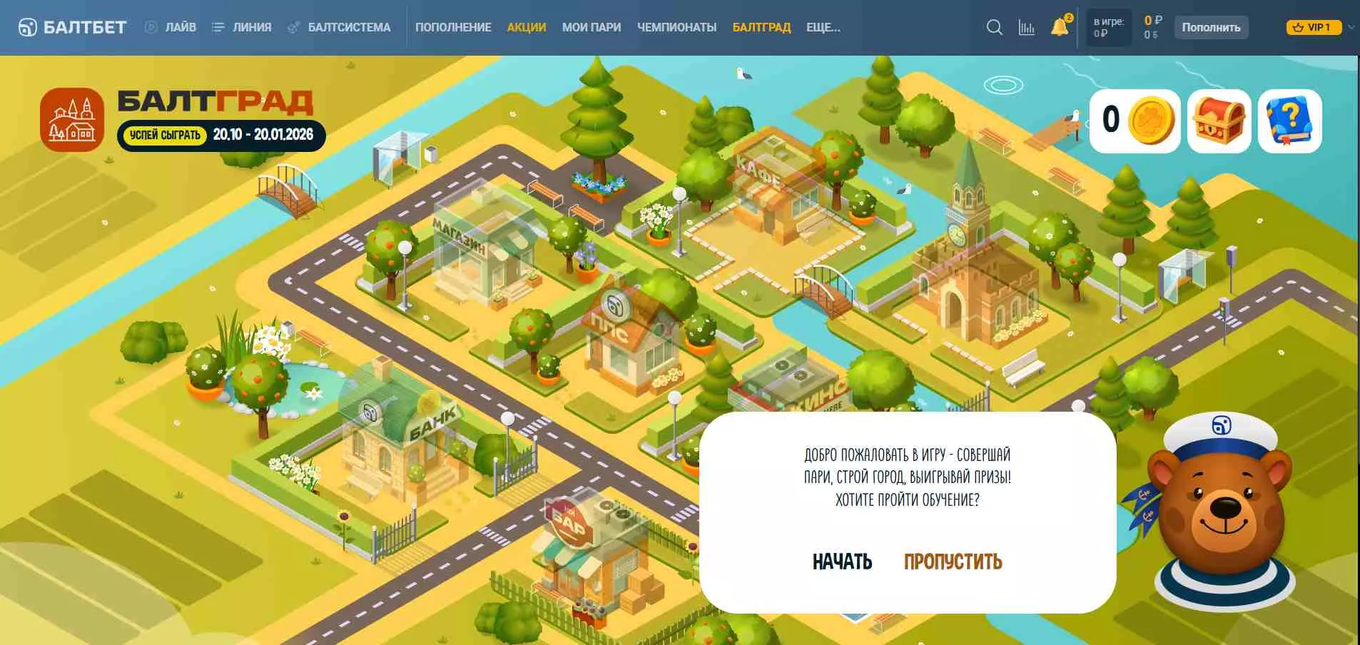 Об игре БалтГрад: букмекер выделил на акцию 25 миллионов и добавил хорошие призы, среди которых и фрибеты Балтбета до 1500 рублей, и автомобиль, и море техники, гаджетов, сертификатов на покупки в Озоне и М.Видео. Главное, на что нужно обратить внимание — это активность и ставки со стороны игроков. Для постройки города необходимы монеты, а падают они только за оформление пари. Придется хорошо потратиться, чтобы строить и повышать уровни зданий и получать билеты для участия в розыгрышах.