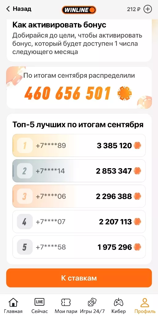 По итогам сентября Winline распределил бонусы за активность на сумму 460 656 501 рубль.