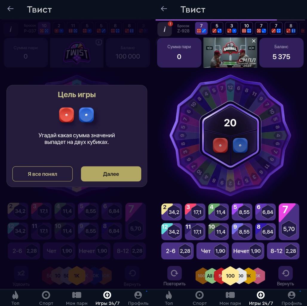 В букмекерской конторе Фонбет этот раздел называется «Игры 24/7» и включает сразу 11 азартных развлечений спортивного направления, где все результаты определяются в случайном порядке. Рассказываем про все быстрые игры в букмекерской конторе. В отличие от традиционных спортивных или киберспортивных событий, где исход зависит от матча или турнира, быстрые игры 24/7 в FONBET основаны на случайных числах или алгоритмах, обеспечивающих выигрыш за считанные секунды 👇