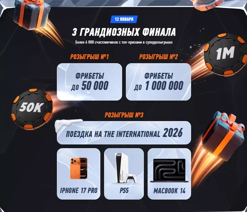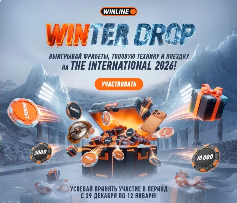 Winline Winter Drop (Винтер Дроп)🎄 — масштабная новогодняя акция от букмекера с ежедневными фрибетами и подарками для каждого! Это не просто раздача, а настоящий праздничный марафон с колесом удачи, розыгрышами и грандиозным суперпризом — поездкой на финал The International 2026 в Шанхай.