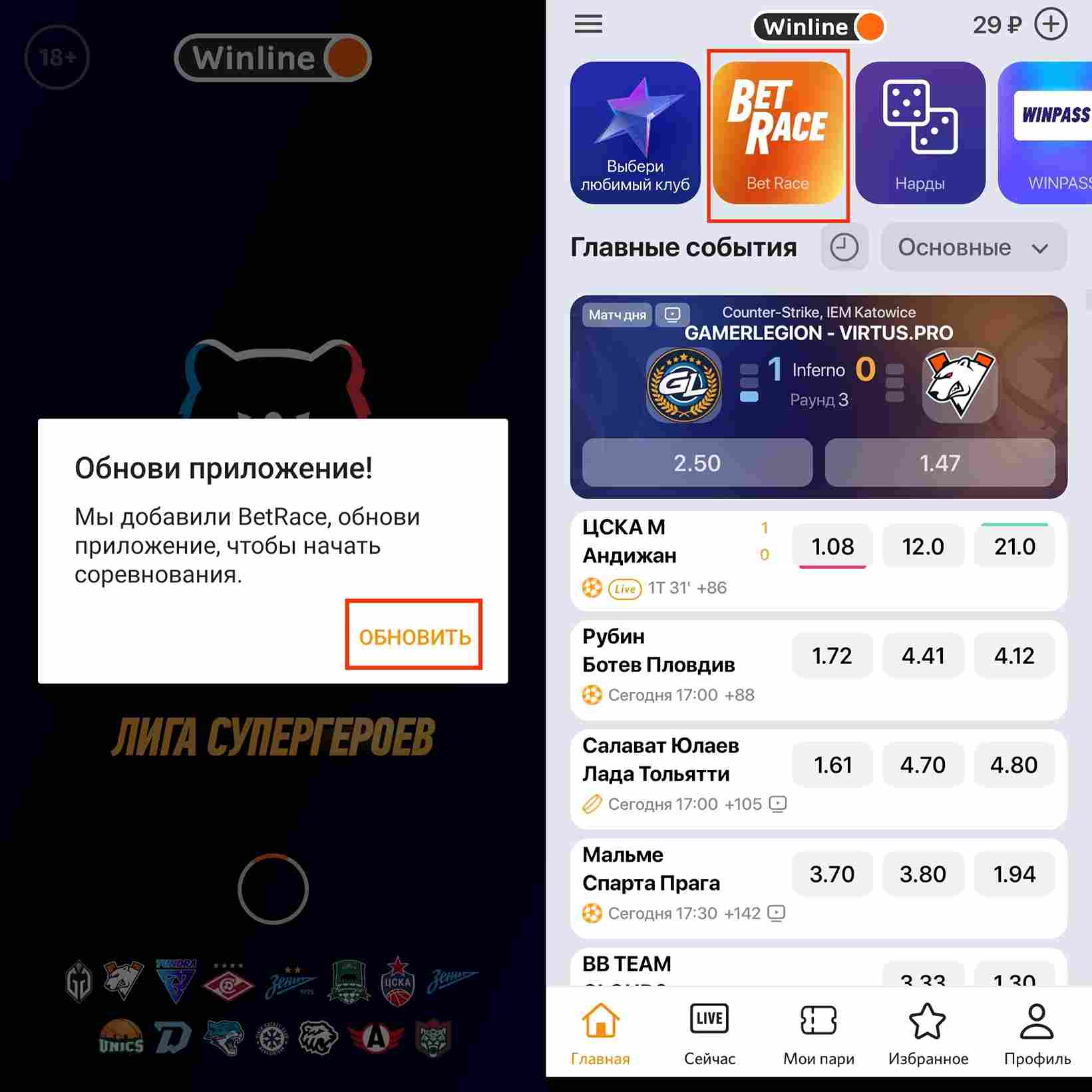 Раздел доступен как в мобильном приложении, так и в браузерной версии сайта. Если в мобильном профиле вкладка Betrace отсутствует, необходимо обновить софт до последней версии.