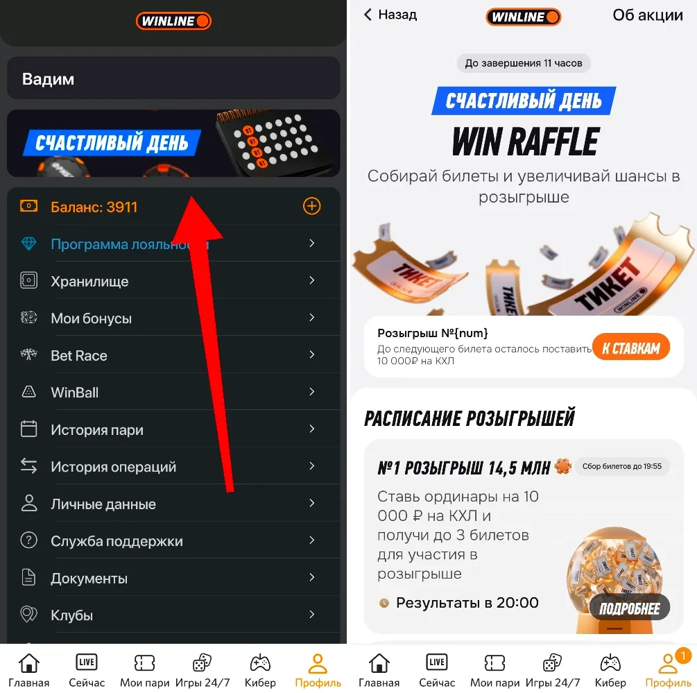 - Перейти на страницу акции «Счастливый день», затем в win raffle