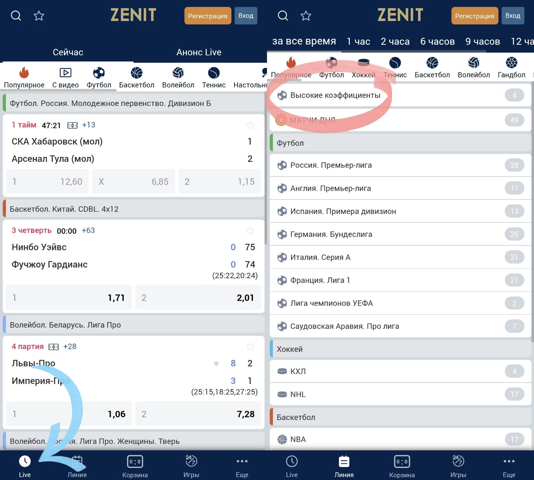 Показываем, как найти высокие коэффициенты в БК Зенит.