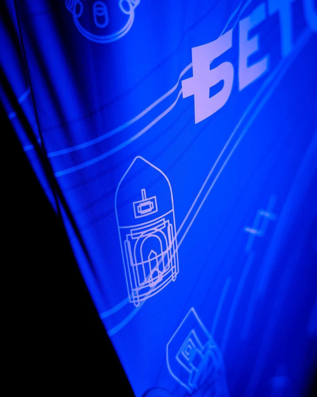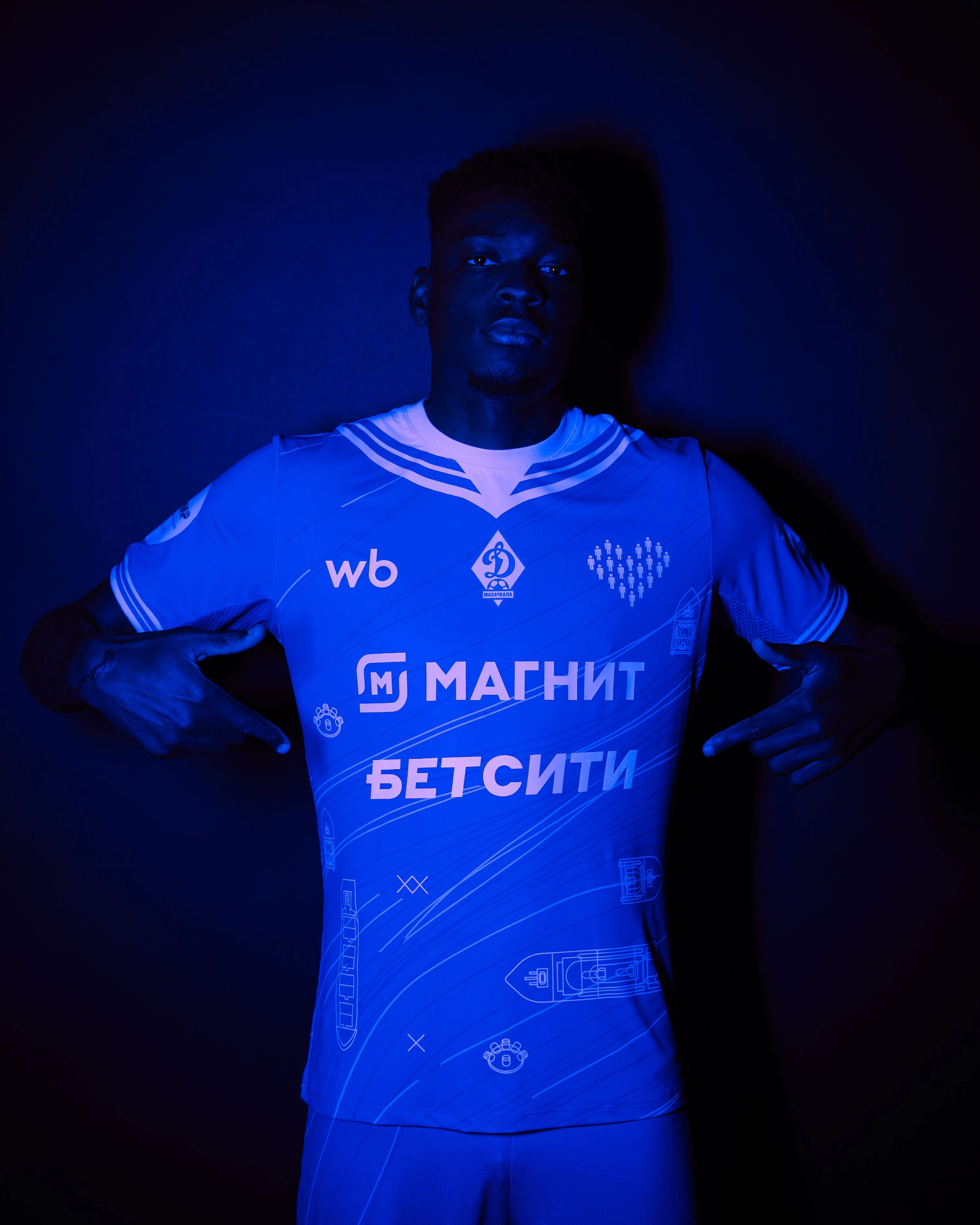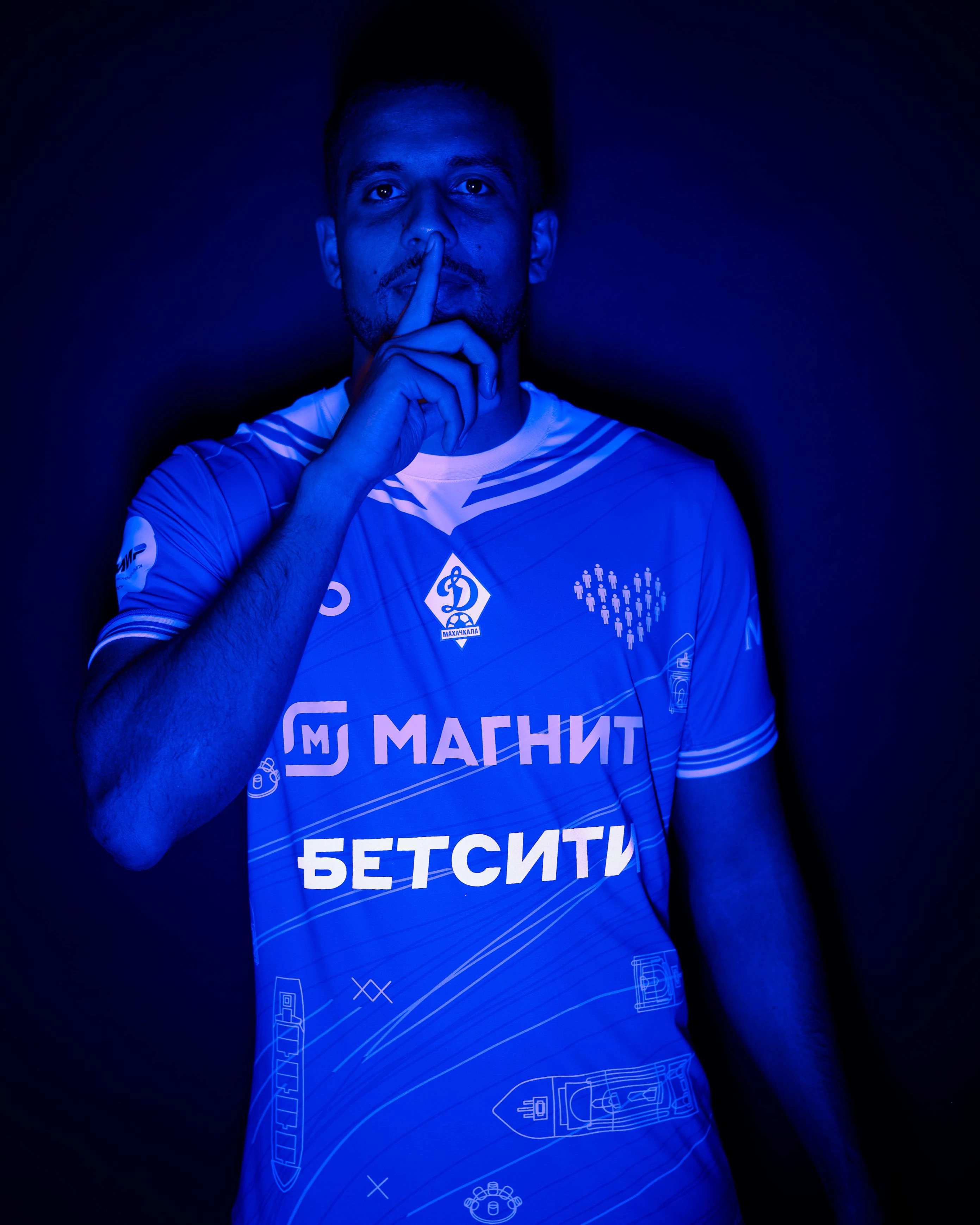 Ранее аналогичные комплекты уже представили «Балтика» и «Сочи» в предыдущем туре. Джерси выполнены в синей цветовой гамме, дополнены классическим белым гюйсом и манжетами. В качестве фонового рисунка использованы элементы культовой игры «Морской бой». При этом логотипы «Динамо» и БЕТСИТИ обладают эффектом свечения в темноте.