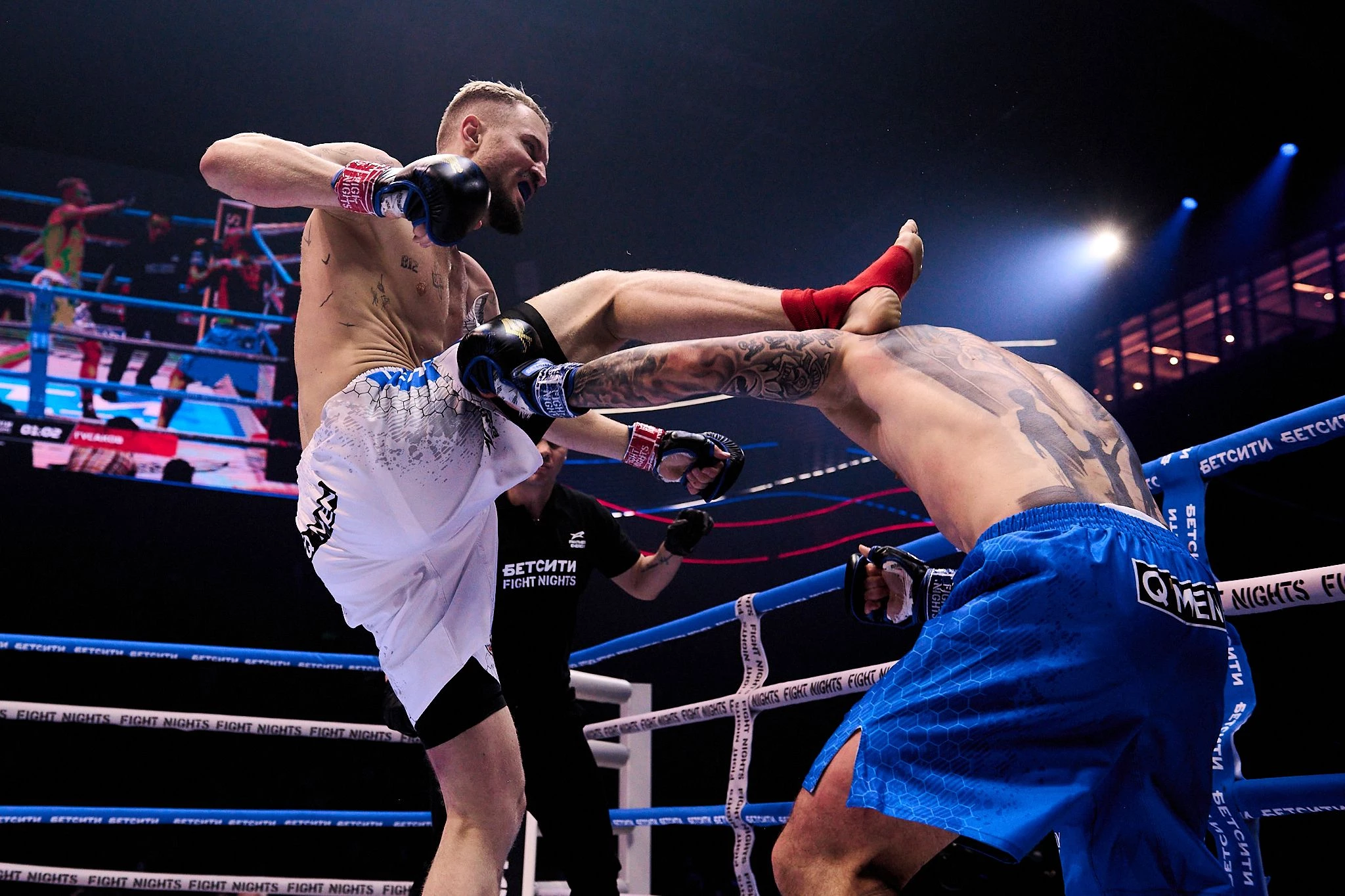 Главным событием вечера стал бой между бывшим игроком сборной России Федором Кудряшовым и рэпером Гуди. Поединок завершился досрочно: во втором раунде музыкант нанес хай-кик, отправив соперника в нокаут.