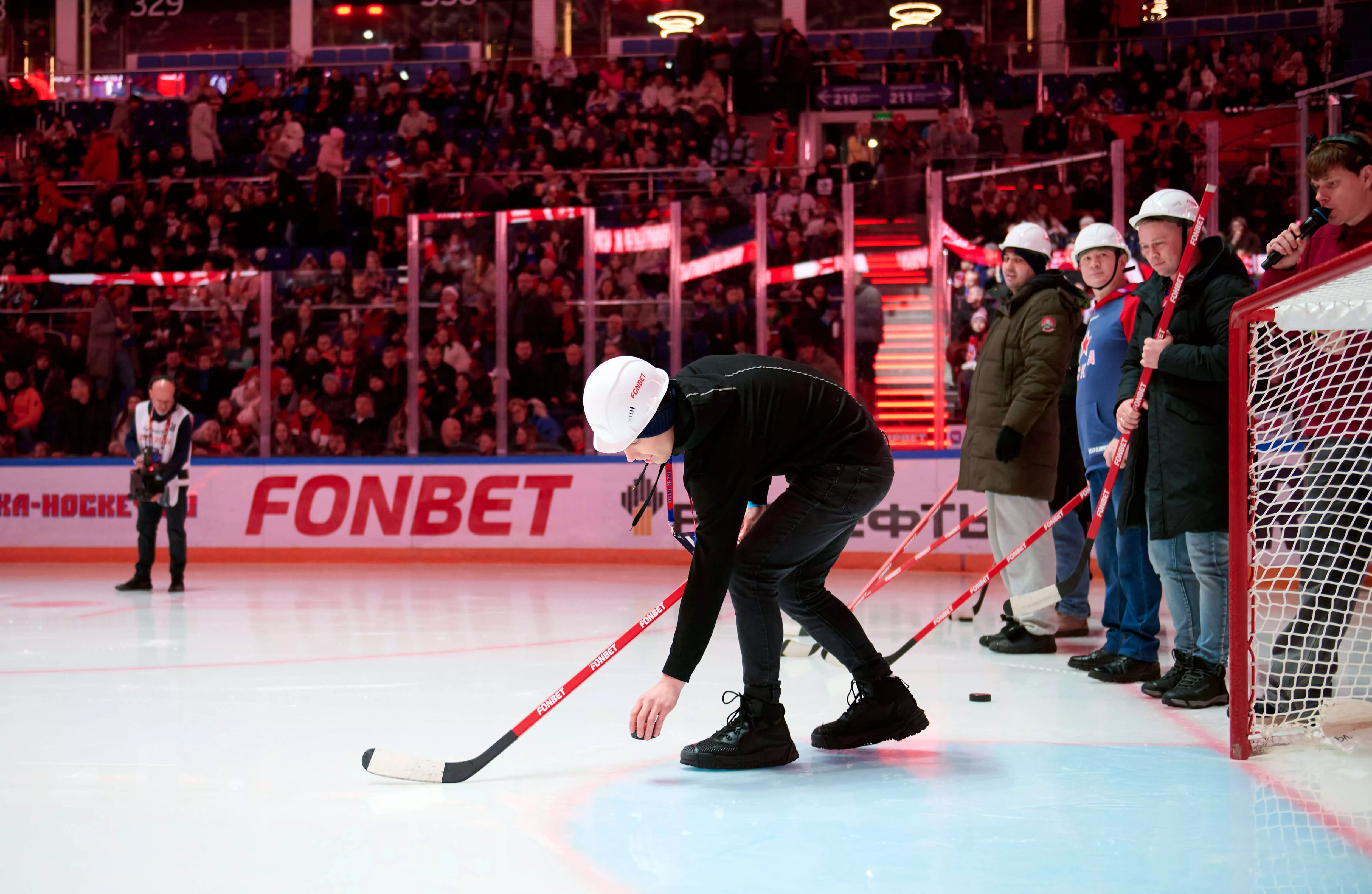 В первом перерыве матча участники по очереди бросали по одной шайбе в сторону центра льда, где находились ключи от автомобиля. Самым точным оказался болельщик по имени Станислав — именно он и стал обладателем внедорожника Niva Legend.