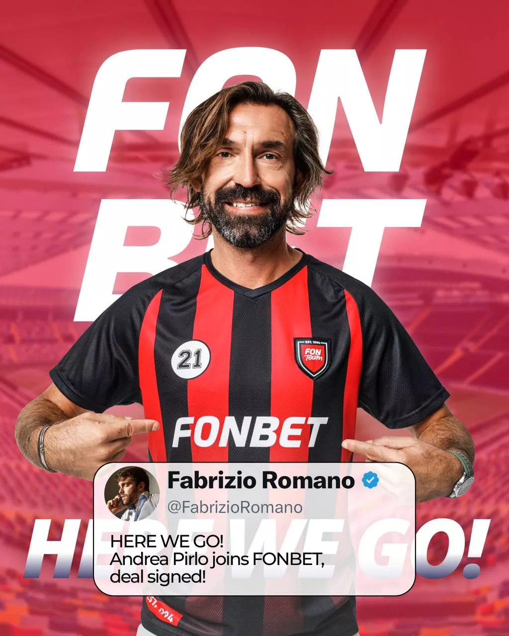 Легендарный итальянский футболист Андреа Пирло присоединился к команде «Фонбет» в качестве глобального амбассадора. Чемпион мира и двукратный победитель Лиги чемпионов будет представлять интересы компании на российском и международном рынках.
