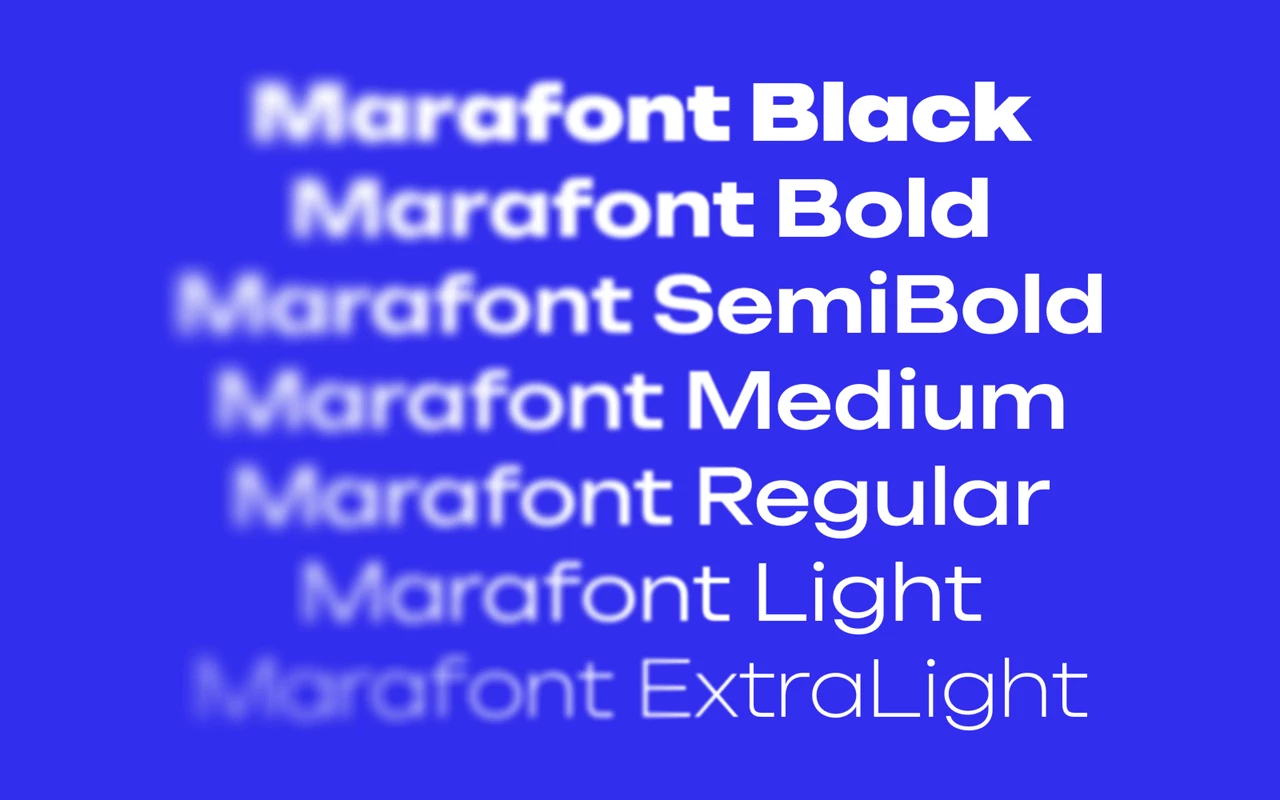 У «Марафона» появилась собственная гарнитура — Marafont. Это широкий жирный гротеск, разработанный специально под новый визуальный характер бренда.