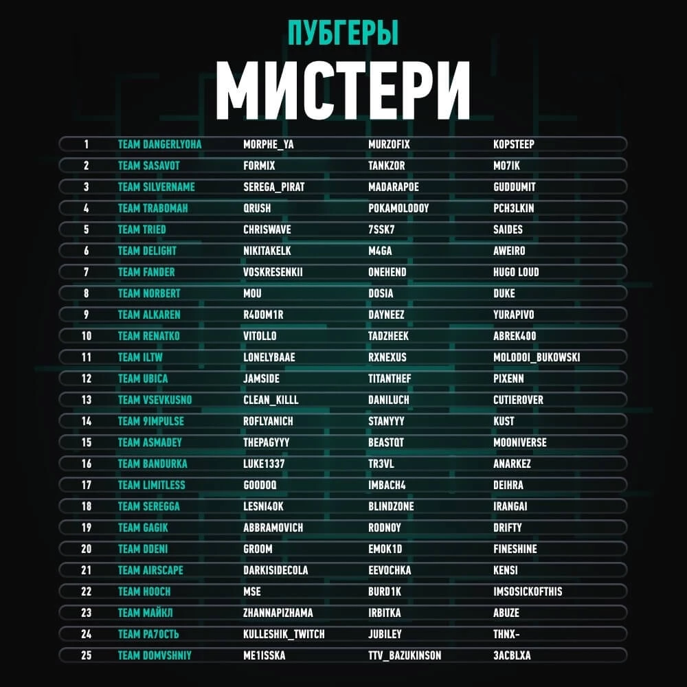 В чемпионате примут участие 25 команд, в состав которых войдут популярные стримеры, блогеры и профессиональные игроки из разных киберспортивных дисциплин. Среди участников заявлены Sasavot, SilverName, Serega_Pirat, TRABOMAH, ILTW, Dosia и другие известные представители игрового сообщества.