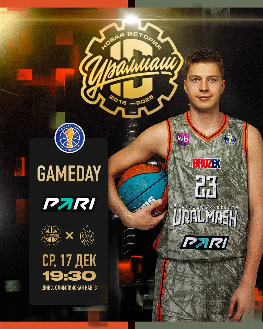 17 декабря в Екатеринбурге состоится матч Единой лиги ВТБ между «Уралмашем» и московским ЦСКА. Встреча станет особенной для хозяев площадки — клуб отметит десятилетие с момента своего возрождения.